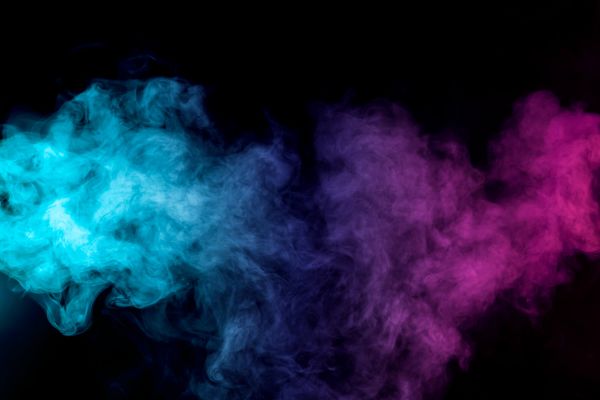 Blå og rosa røyk på svart bakgrunn. Den svarte bakgrunnen får røyken til å se mystisk ut.