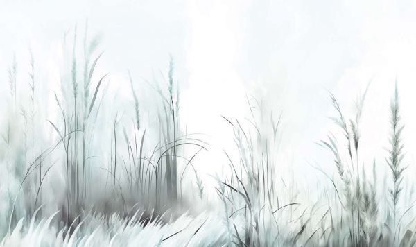 Svingende prydgress i varme taupefarger skaper en dempet og stilfull atmosfære. Akvarelleffektene og myke penselstrøk gir et tidløst og elegant utseende, ideelt for et beroligende interiør.