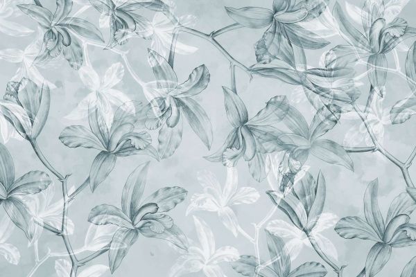 Dette designet tilbyr en raffinert tolkning av orkideer, der fine blyantlinjer kombineres med myke akvarellakenter. De delikate pastellfargene, som varierer fra lys rosa og lilla til friske blåtoner, skaper en harmonisk og beroligende effekt. Blomstene ser nesten ut til å være i bevegelse, som om de danser mot en bakgrunn av drømmende akvarellstrukturer. Dette designet passer perfekt inn i et romantisk interiør eller et beroligende moderne rom. Kombiner det med hvite eller lys grå møbler for et minimalistisk utseende, eller legg til myke stoffer og gyldne accenter for et snev av luksus. Designet kan brukes i stuer, soverom eller til og med stilige kontorlokaler, hvor det gir et beroligende, men stilfullt uttrykk. De subtile mønstrene og fargene gjør at designet enkelt tilpasser seg ulike stiler, fra moderne til klassisk.