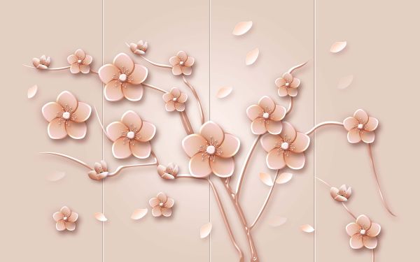 3d, illustrasjon, på, ei, rosa bakgrunn, med, stor, rosa, abstrakt, blomster.