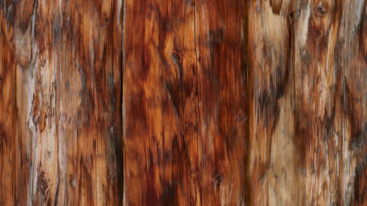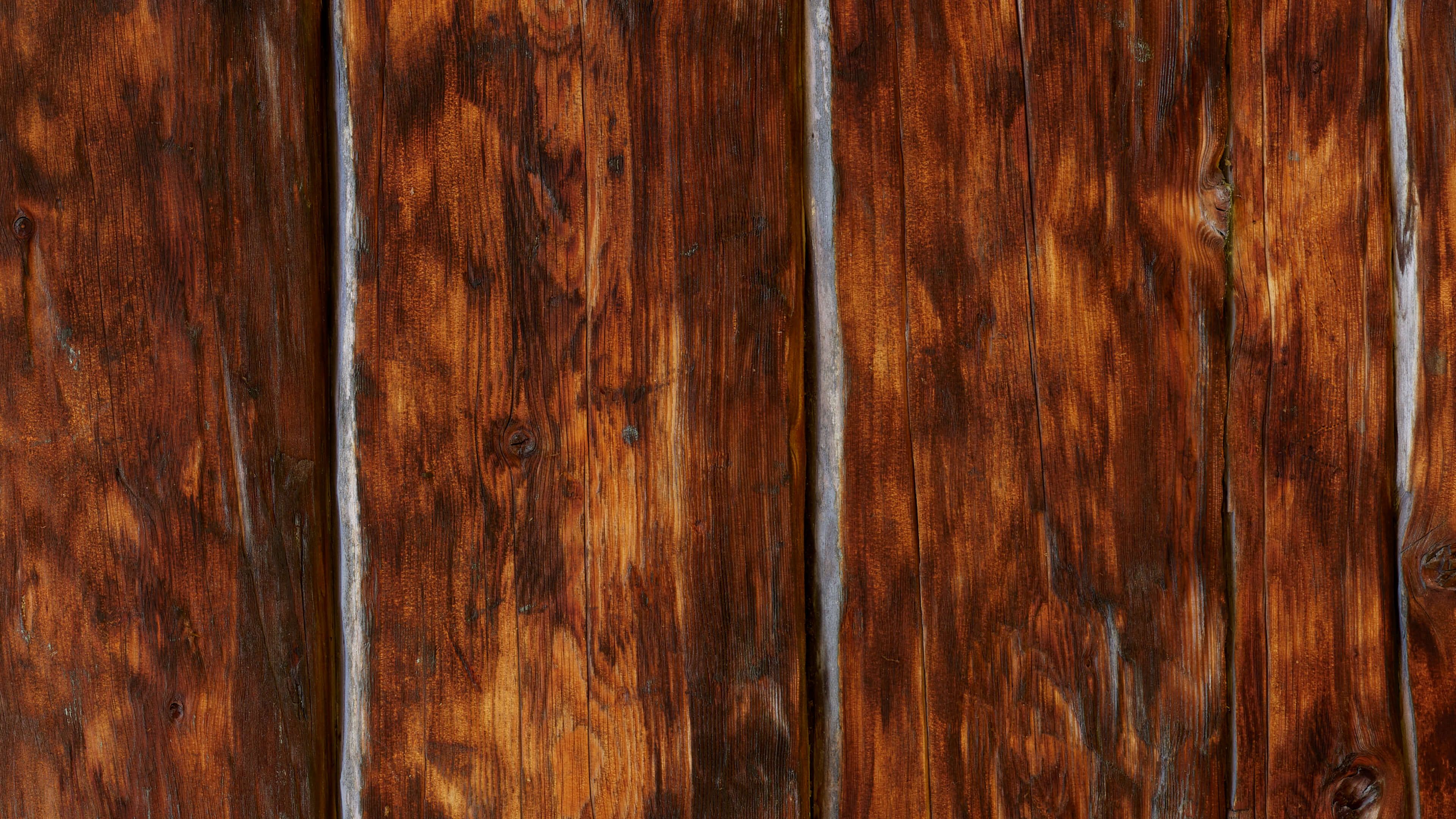 Robust brent tre. Treverket inneholder ulike nyanser av brunt, noe som gir rommet enda mer atmosfære.