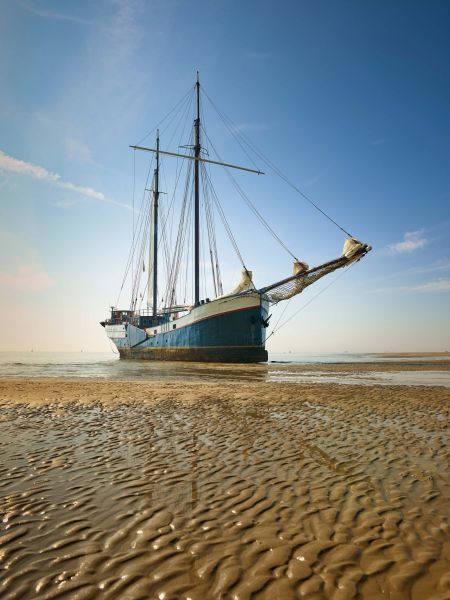 Send på Vadehavet med nydelige rygger i sanden i forgrunnen.
