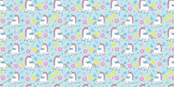 Bakgrunn av små enhjørninger og blomster. Påfør denne på veggen i barnehagen for mer atmosfære.