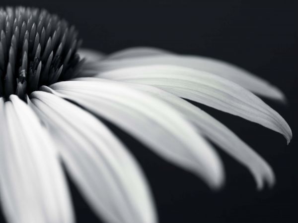Coneflower -blomsten, eller også kalt Echinacea, i svart -hvitt. Kombiner denne lukkingen