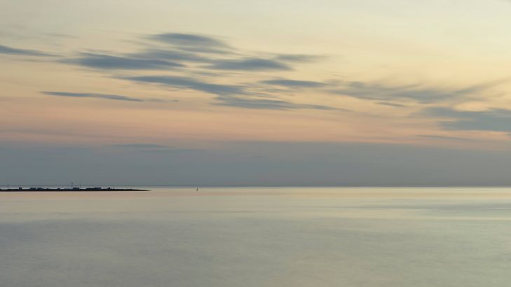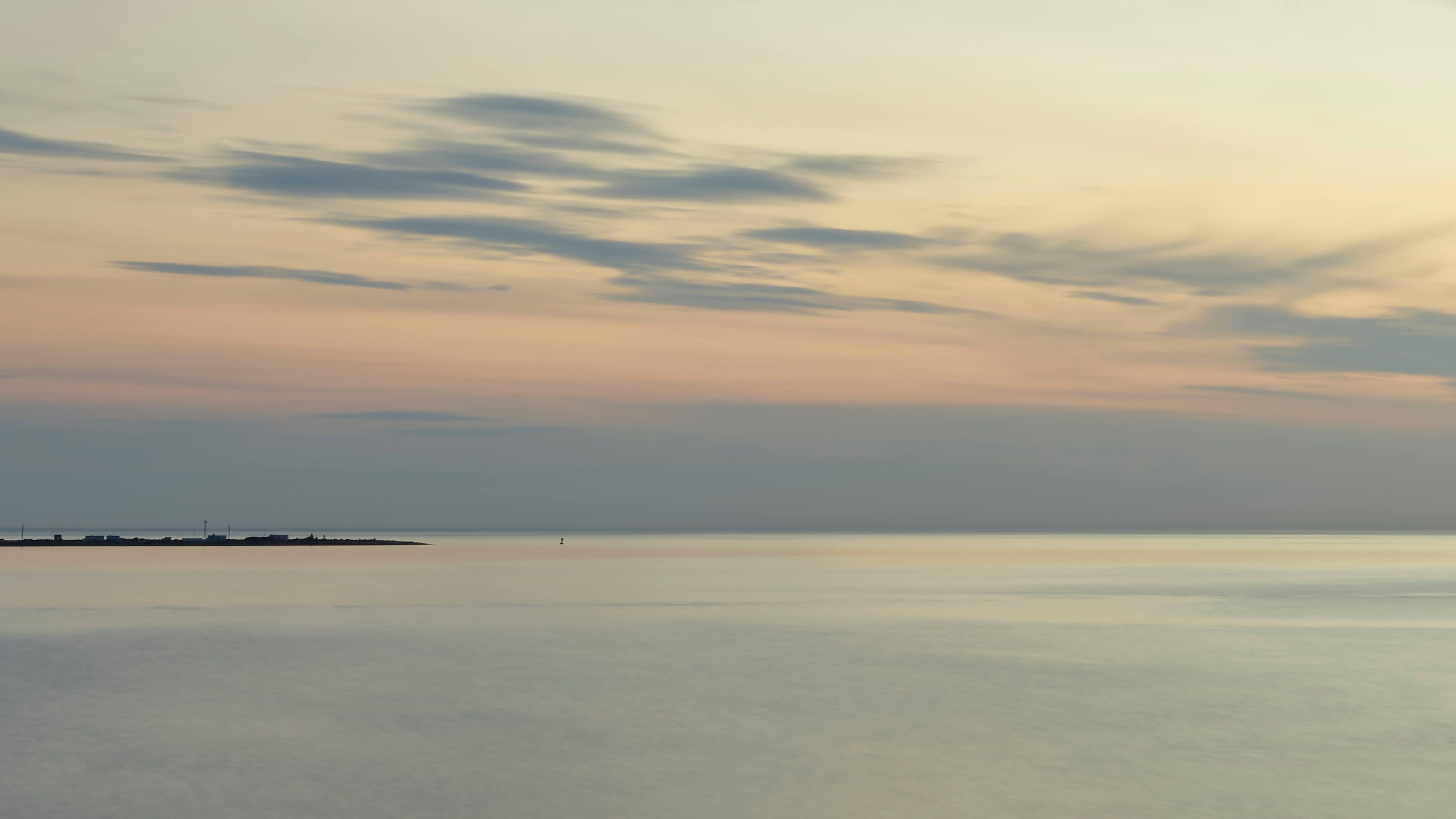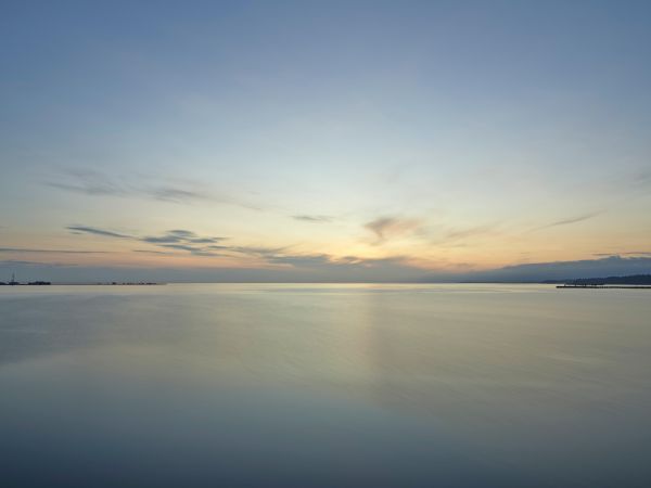 Soloppgang på kysten. Detaljert bilde av en soloppgang over vannet