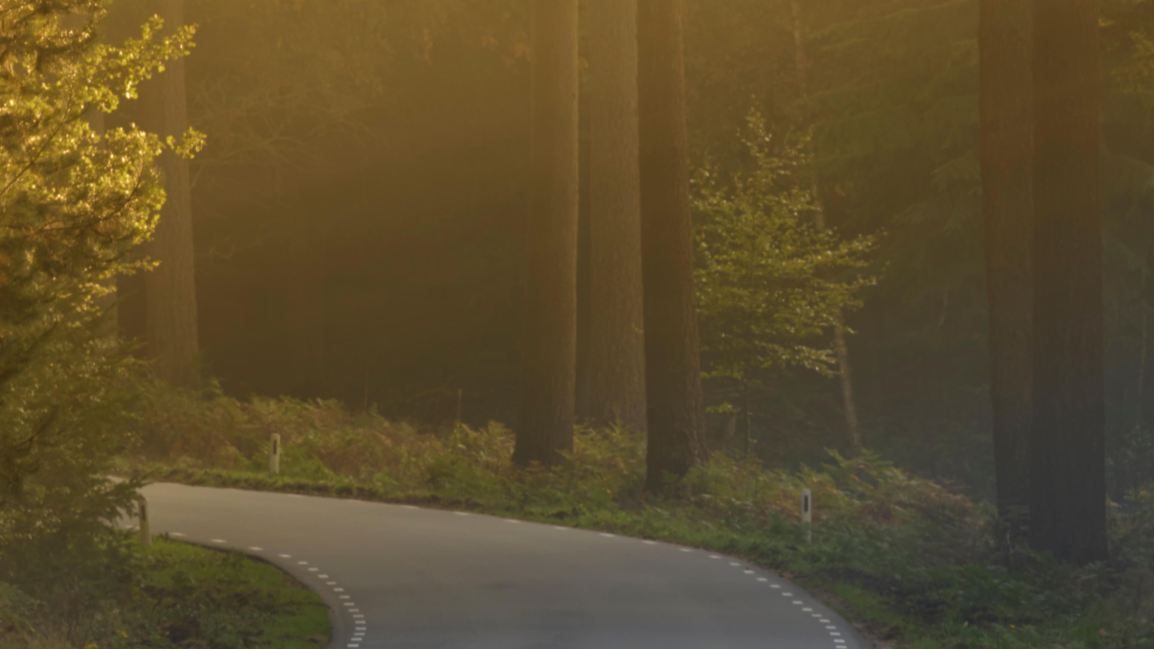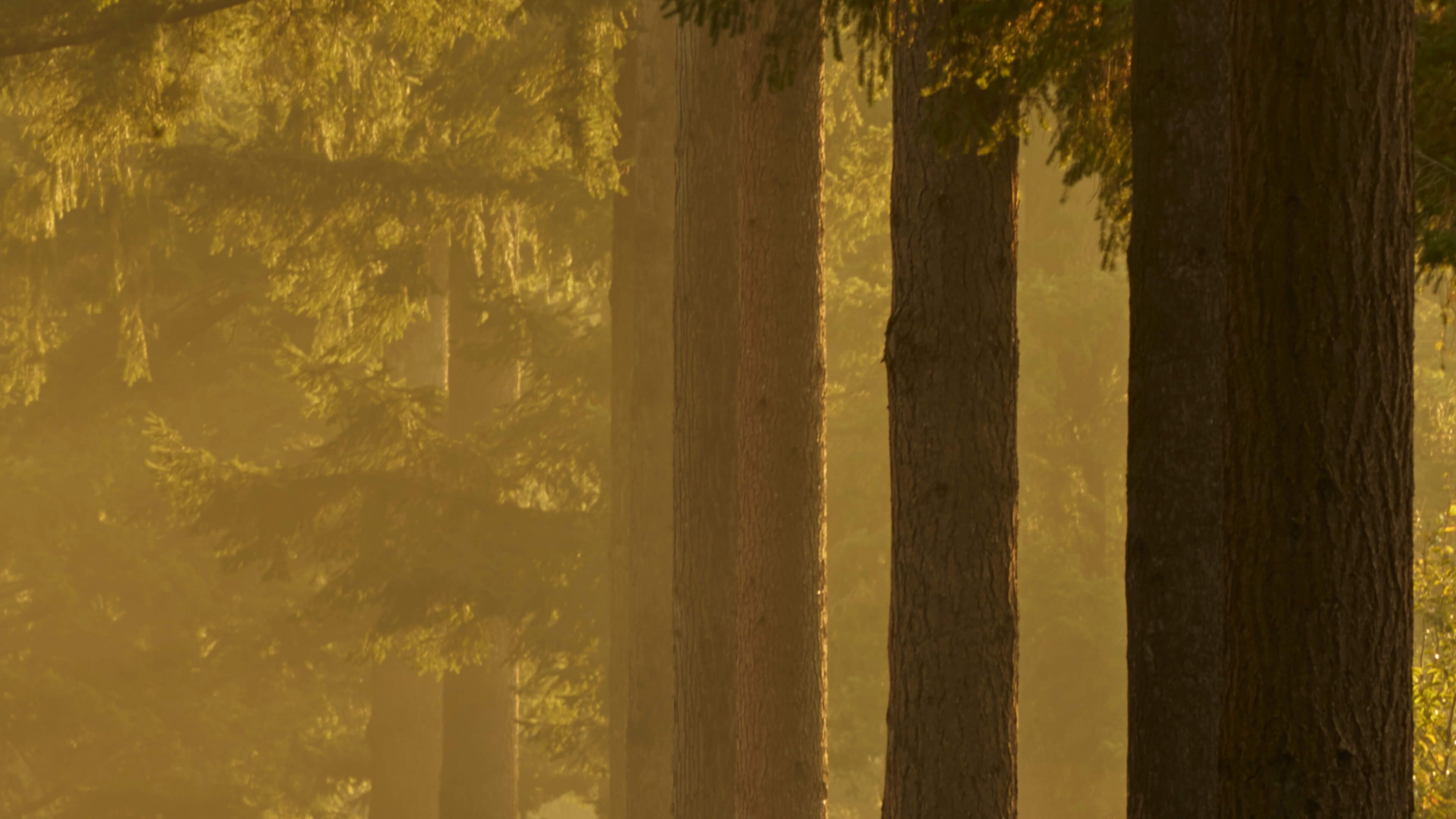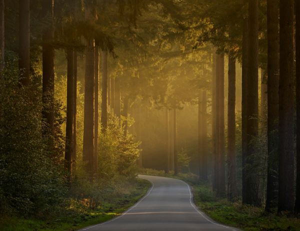Soloppgang på vei gjennom skogen i forskjellige materialer