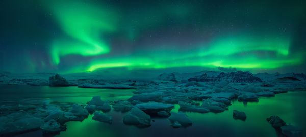 Nordlyset over et islandskap i Norge.