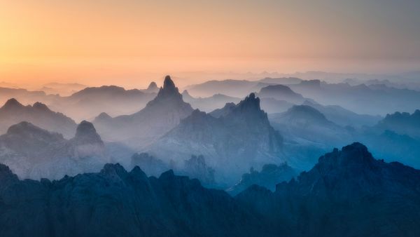 Veggmaleri av et fjellandskap med en solnedgang. Kombiner dette i for eksempel stua.