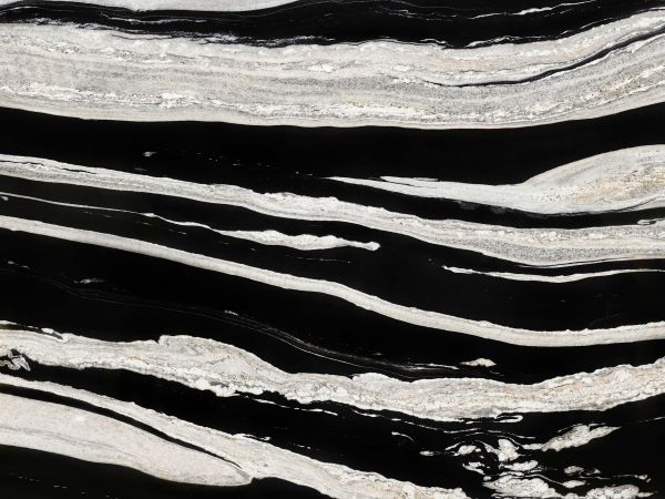 Svart marmor med hvite årer. De svarte og hvite fargene gjør dette fototapetet enkelt å kombinere i nesten alle hjem.