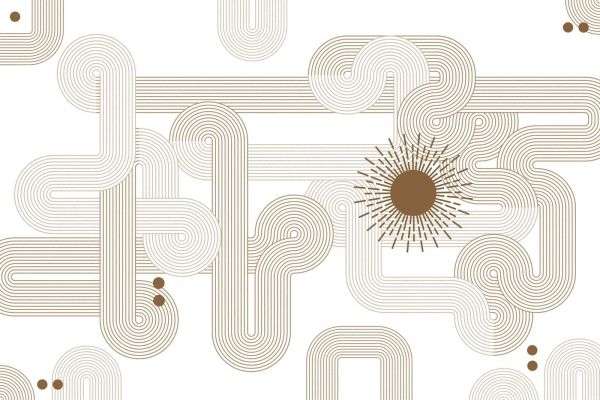 Dette designet viser et komplekst virvar av linjer i varme jordfarger, ispedd delikate skyggeeffekter. Det er et hypnotiserende mønster som fremkaller både en følelse av bevegelse og trygghet.