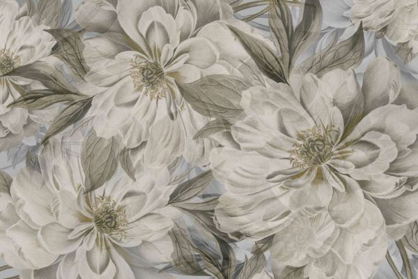 En raffinert komposisjon av naturlig skjønnhet, der blomster, fugler og botaniske elementer er avbildet i en harmonisk balanse. Subtile farger og detaljerte mønstre gir et elegant og tidløst utseende som forvandler ethvert rom.