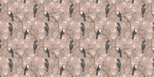 En elegant komposisjon av tukaner og blomster, gjengitt i subtile pastellfarger som fremkaller en rolig, tropisk atmosfære.