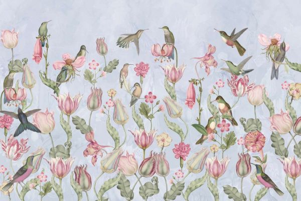 Tapet - Vår Kolibri Symfoni - Pastellblå Serenade