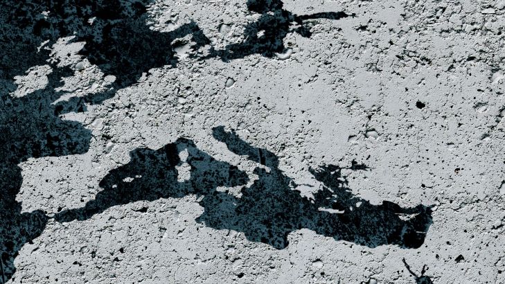 Verdenskart betong tekstur på en mørk bakgrunn. Den mørke bakgrunnen gjør verdenskartet enda bedre.