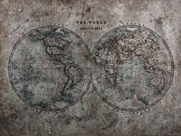 Verdenskart med gråtoner på fototapet. Gråtonene gir dette fototapetet et industrielt utseende.