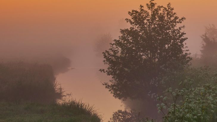 Tapet - Vindmølle ved soloppgang Trestubbe