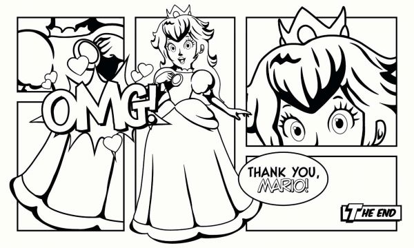 Ett romantiskt stripmoment fullt av känsla och glamour. Med hjärtan, stora ögon och orden "OMG!" och "Tack, Mario!" utstrålar denna scen magi, tacksamhet och prinsessstil.