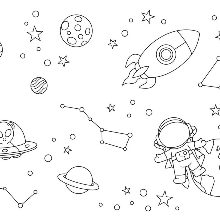 Ditt lekfulla och drömlika design tar dig med på en underbar resa genom universum. I ett stjärnfullt rum svävar en glad astronaut över jorden, en klassisk raket färdas förbi planeter, och en nyfiken utomjording kommer förbi i sin flygande tallrik. Luften är fylld med små och stora stjärnor, prickar som föreställer planeter och galaxer, och igenkännliga stjärnbilder som Stora Björnen och Cassiopeia. Allt är avbildat i klara, svarta linjer på en ljus bakgrund, vilket gör att helheten förblir överskådlig och lämnar utrymme för fantasi eller till och med färgläggning. De olika elementen – som månen, Saturnus, rymddräkten och UFO:t – ger helheten en lekfull blandning av utbildning och fantasi. Perfekt för ett barnrum, lekhörna eller till och med ett temaklassrum kring temat rymd eller vetenskap. Denna design passar fint in i en skandinavisk inredning med ljusa trätoner och blå accenter, eller just i ett futuristiskt barnrum med glow-in-the-dark stjärnor, planetmobiler och rymdtema tillbehör. För en extra lekfull effekt kan du kombinera med lampor i form av stjärnor, väggklistermärken av raketer eller sängkläder med planettryck. Designen väcker nyfikenhet och låter barn drömma om avlägsna galaxer och utomjordiska äventyr – ett rum fullt av möjligheter, bokstavligt och bildligt.