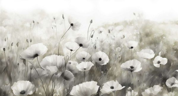 Mönstret speglar lugnet och sereniteten i en vårträdgård, med mjuka gröna nyanser som omger de delikata vita vallmo. De subtila penseldragen framhäver blommornas naturliga konturer, vilket ger en raffinerad och lugnande känsla. Helheten andas friskhet och livskraft, som om en mjuk bris sveper genom blommorna. I en botaniskt inspirerad inredning kommer denna design verkligen till sin rätt bredvid trämöbler, rottingdetaljer och äkta krukväxter. I en modernare inredning kan det fungera som ett subtilt sätt att föra in lite färg och natur. Tänk till exempel på vita eller ljusgrå möbler, så att den gröna bakgrunden visuellt lyfter rummet. Tack vare den ljusa, avslappnade atmosfären är denna design idealisk för utrymmen där du vill koppla av, som ett sovrum, vardagsrum eller hemmakontor. Genom att kombinera med neutrala nyanser och naturliga material förblir fokus på det florala mönstret, och en plats full av harmoni och stil skapas.