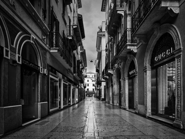 Shoppinggata i svart och vitt