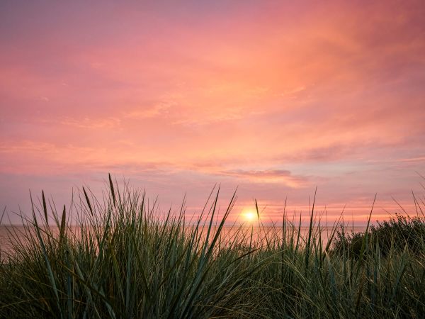 Vacker soluppgång vid havet med mycket färg. Kombinera till exempel den här fototapeten i vardagsrummet.