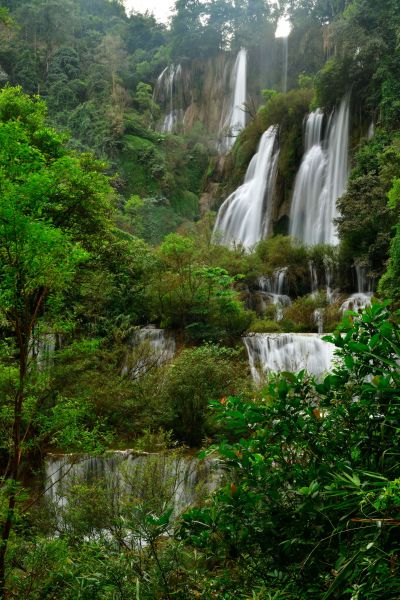 Stort vattenfall i Thailand. Ett vackert vattenfall i den gröna tropiska skogen i Umpang National Park, Tak, Thailand.