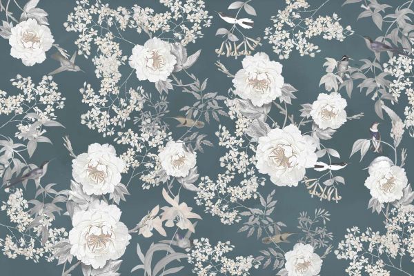 En raffinerad komposition av naturlig skönhet, där blommor, fåglar och botaniska element avbildas i en harmonisk balans. Subtila färger och detaljerade mönster ger en elegant och tidlös look som förvandlar alla rum.