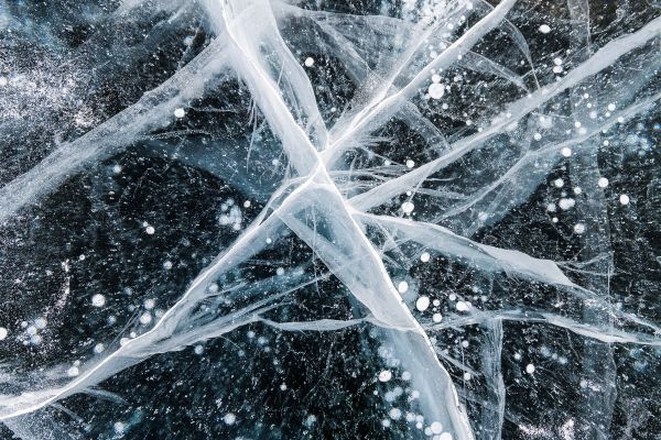 En illustration av den frusna Bajkalsjön, en isstruktur med abstrakta sprickor.