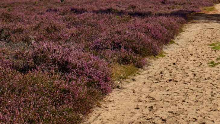 Träd längs en sandig bana i hedar. Ta med hedlandet in i ditt hem med denna fototapet.