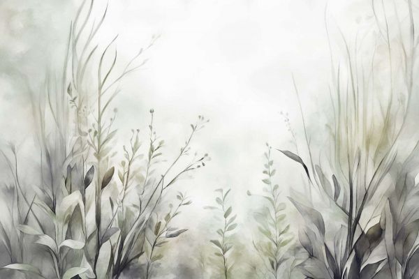 Ett uppfriskande akvarellmönster med mjuka gröna nyanser, kombinerat med ljusa sand- och krämfärger. De graciösa grässtråna och fina bladen ger en naturlig, fräsch känsla, perfekt för en prydlig och mysig inredning.