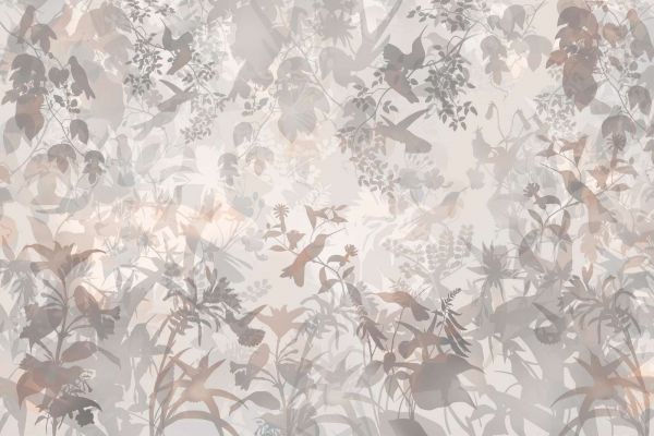 Ett raffinerat mönster med delikata blommor och eleganta fåglar, subtilt vävda i en harmonisk komposition. Färgskalan tillför en lugn och elegant atmosfär, perfekt för varje rum.