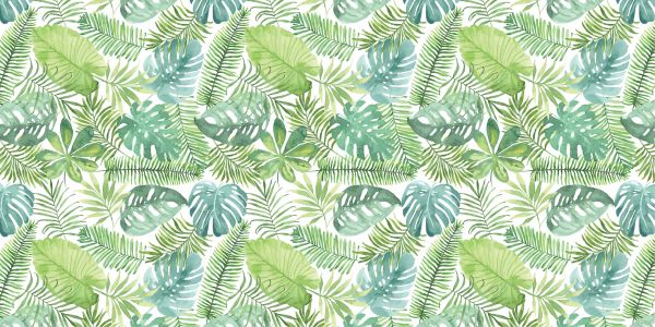Mönster av flera tropiska akvarellblad på en vit bakgrund