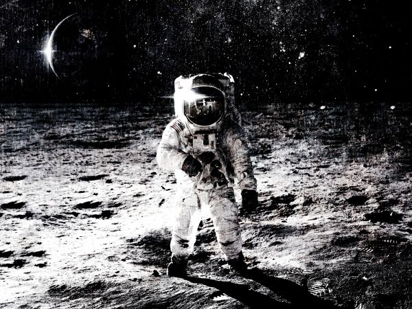 Vintage astronaut i svart och vitt. Kombinera den här fototapeten i ditt rum och skapa ännu mer atmosfär i ditt hem.