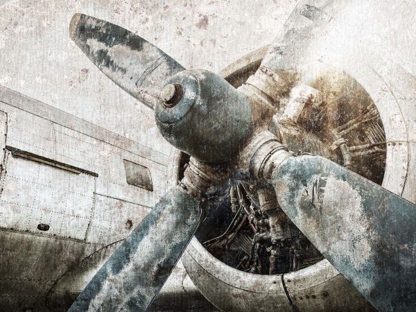 Gammal flygplansmotor med propeller. Kombinera den här fototapeten i ditt hem och skapa en unik atmosfär i rummet.