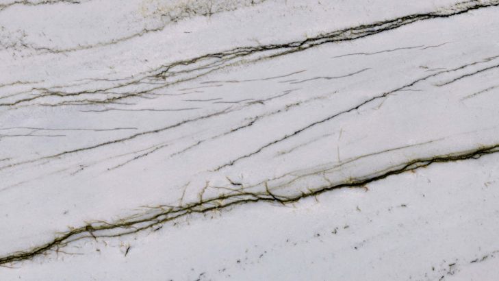 Vit marmor med svarta linjer. Linjerna i marmorn är tydligt synliga, vilket gör den här fototapeten ännu mer realistisk.