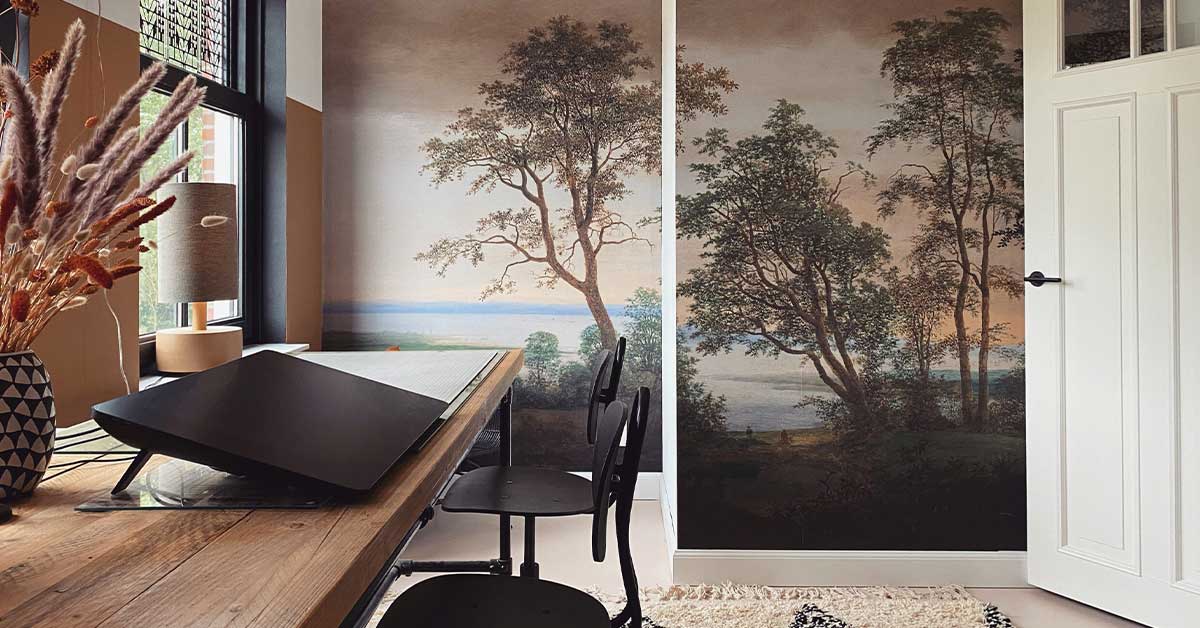 MuralTex är ett finvävt polyestertyg i ett stycke, med skyddande beläggning. Detta gör tapeten extremt stark och bilden skrivs ut in i minsta detalj. På grund av beläggningen skiner inte tapeten, men färgerna ser superklara ut på duken. Tack vare den speciella trycktekniken som vi använder för detta ser färgerna ännu mer verkliga ut. Svart blir också en riktigt djup svart färg och färgelementen framgår så skarpa att man nästan vill röra vid dem.